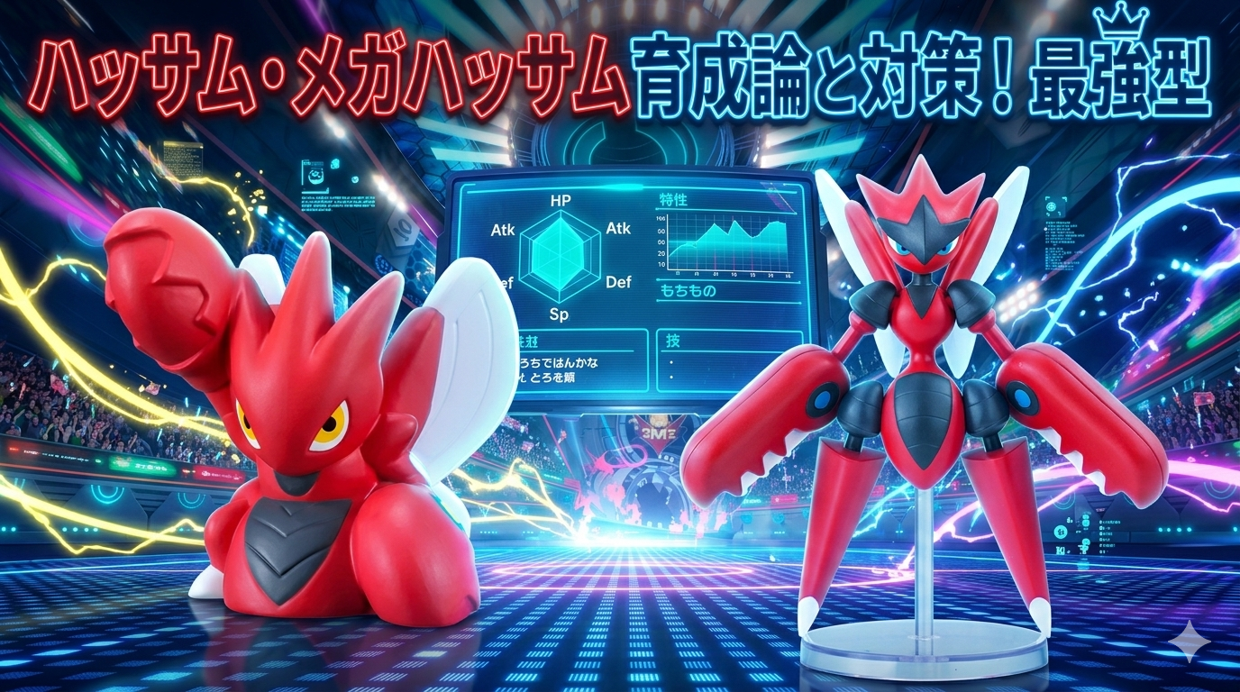 こんにちは!今日もランクマッチで熱いバトルを楽しんでいますか? 今回は、圧倒的な縛り性能で多くのプレイヤーを魅了するはがね・むしタイプの強ポケ、ハッサムとメガハッサムの育成論と対策を徹底解説していきます!